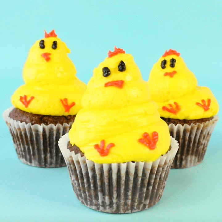 2. Place cupcake liners into a muffin tin. Pro Tip: To create a fun zigzag pattern, squirt the batter into the liners via piping bag! Pop in the oven and bake for about 17-20 minutes or until toothpick inserted comes out clean. Allow to rest before assembly.
