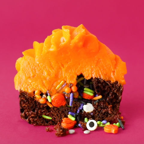 2. Once they're assembled, cut into the cupcake to reveal the sprinkle center. Enjoy!