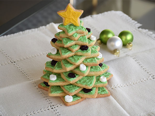 A tree made of sugar cookies is sure to be the focal point at your holiday gathering. Place on a cake stand decorated with small ornaments to embellish the presentation…