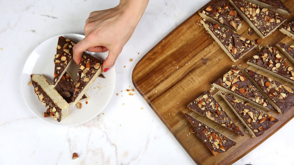 Press the dough evenly into the bottom of the prepared pan. Place the pan in the freezer for 20 minutes, then bake for 20 minutes until the top and edges are golden and set. Transfer to a wire rack and cool completely.